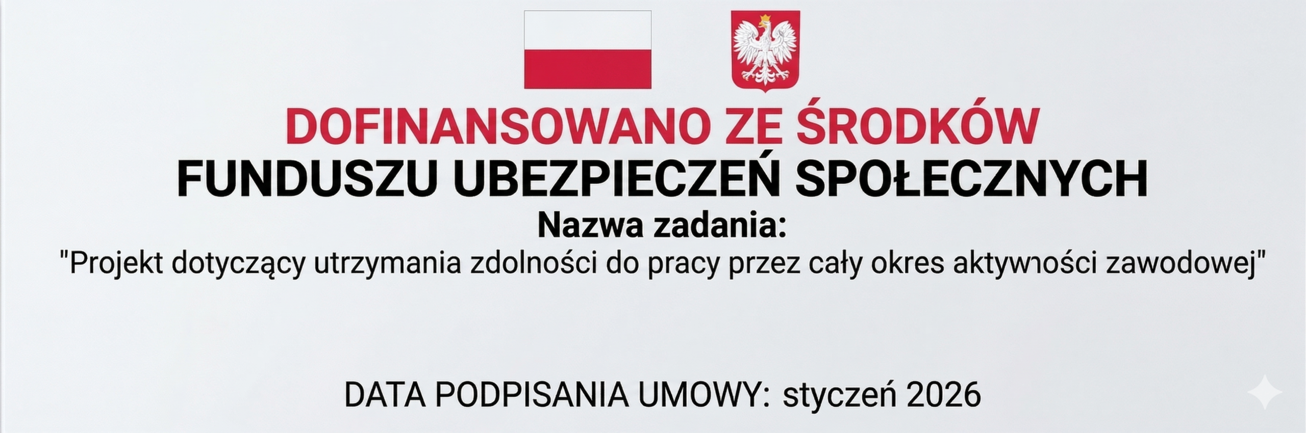 Projekt o nazwie „Ograniczenie negatywnego wpływu czynników środowiska pracy na pracowników uczestniczących w procesie pracy” otrzymał dofinansowanie ze środków Funduszu Ubezpieczeń Społecznych. Umowa na realizację tego zadania została podpisana w styczniu 2026 roku.