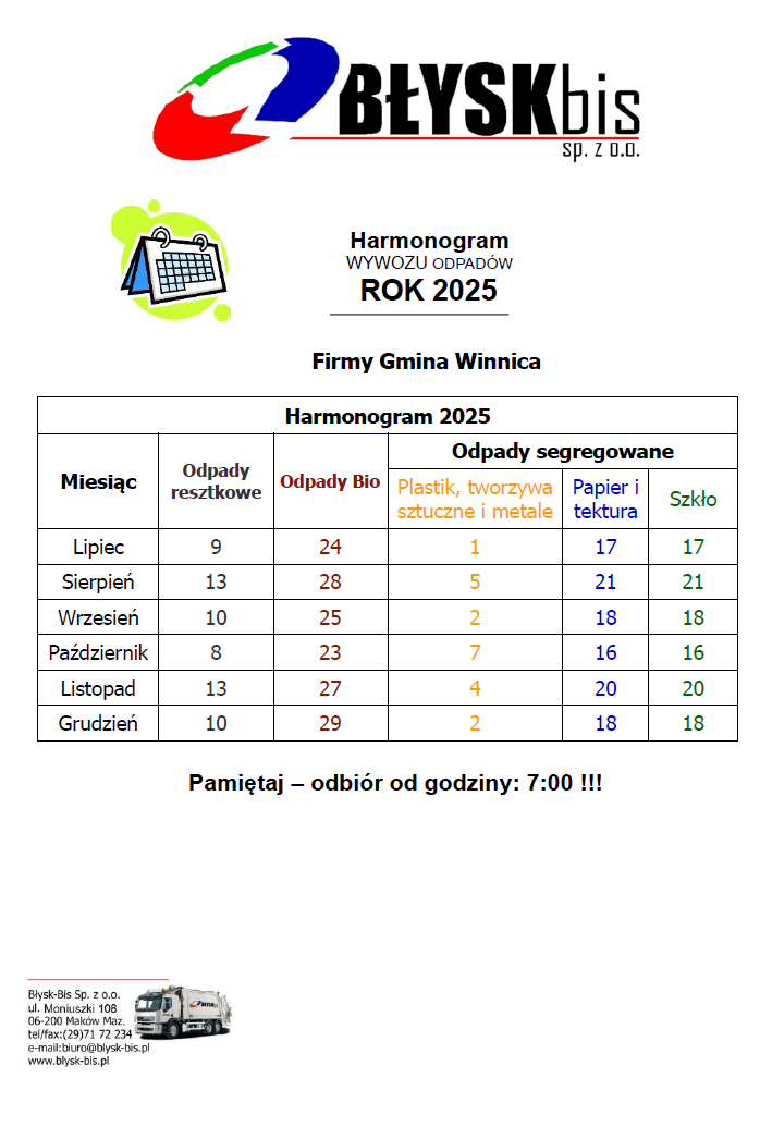 HARMONOGRAM ODBIORÓW