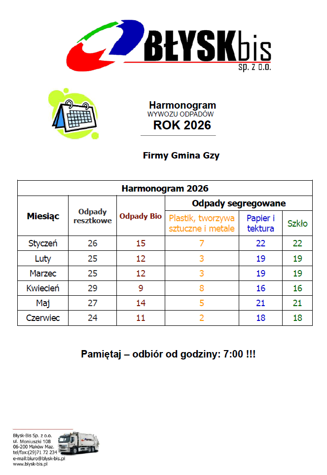 HARMONOGRAM ODBIORÓW