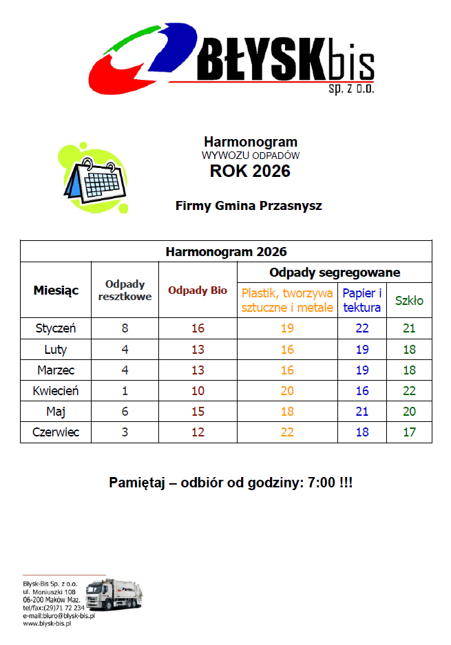 HARMONOGRAM ODBIORÓW