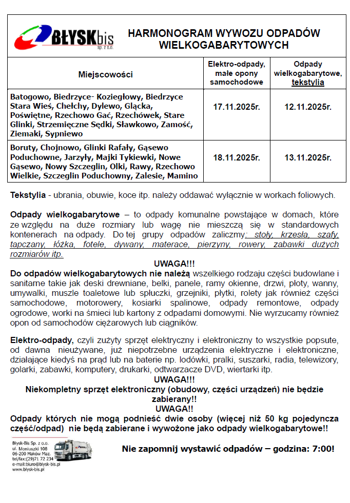 GMINA SYPNIEWO: wielkogabarytowe, elektrosmieci, opony 2025r.