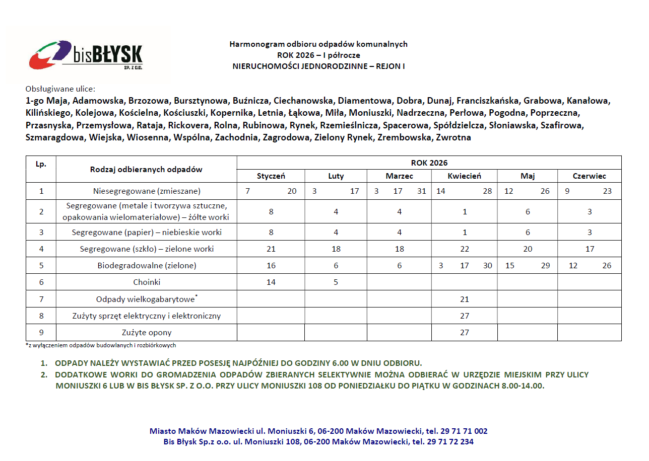 HARMONOGRAM ODBIORÓW